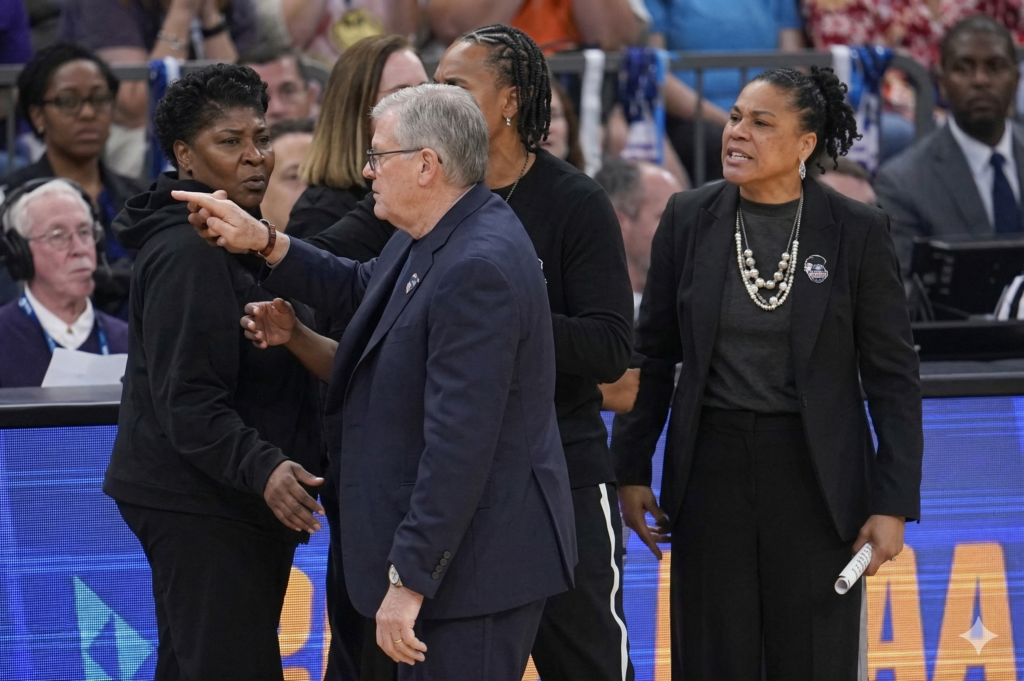 He labeled the foul situation “ridiculous,” noting that all six fouls whistled during the third quarter had gone against UConn. He also brought up an incident involving Huskies star Sarah Strong, whose jersey was torn during play without any foul being called. He alleged that Staley was loudly working the officials throughout the game in ways that were not being penalized. UConn finished the game with 17 total fouls against them; South Carolina was charged with just 8. That number clearly sat with him throughout the second half and well into the postgame.